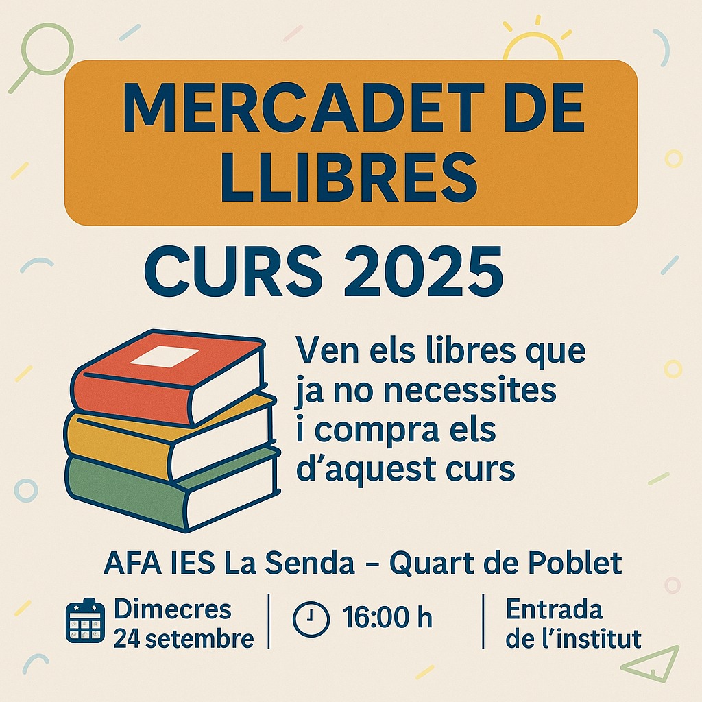 Mercat de llibres. Dimecres 24 de setembre, 16:00 a l´institut.